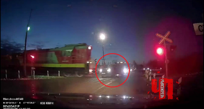 В Чебоксарах пассажирский поезд снес на переезде иномарку: момент ДТП попал на камеру
