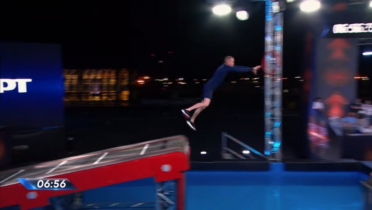 На втором препятствии под названием "Русская дорога" ему не повезло, чебоксарец не смог дотянуться до турника и упал в бассейн.