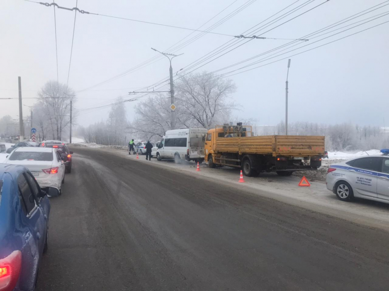 В Чебоксарах в маршрутку врезался КамАЗ: пострадала пассажирка