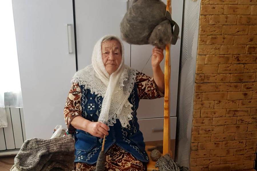 Старушка из Чувашии прядет шерсть и вяжет носки для бойцов СВО
