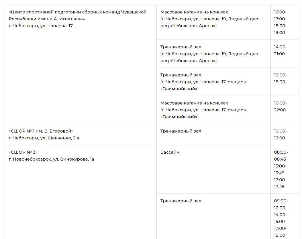 Жители Чувашии смогут бесплатно покататься на коньках, поплавать в бассейнах и не только