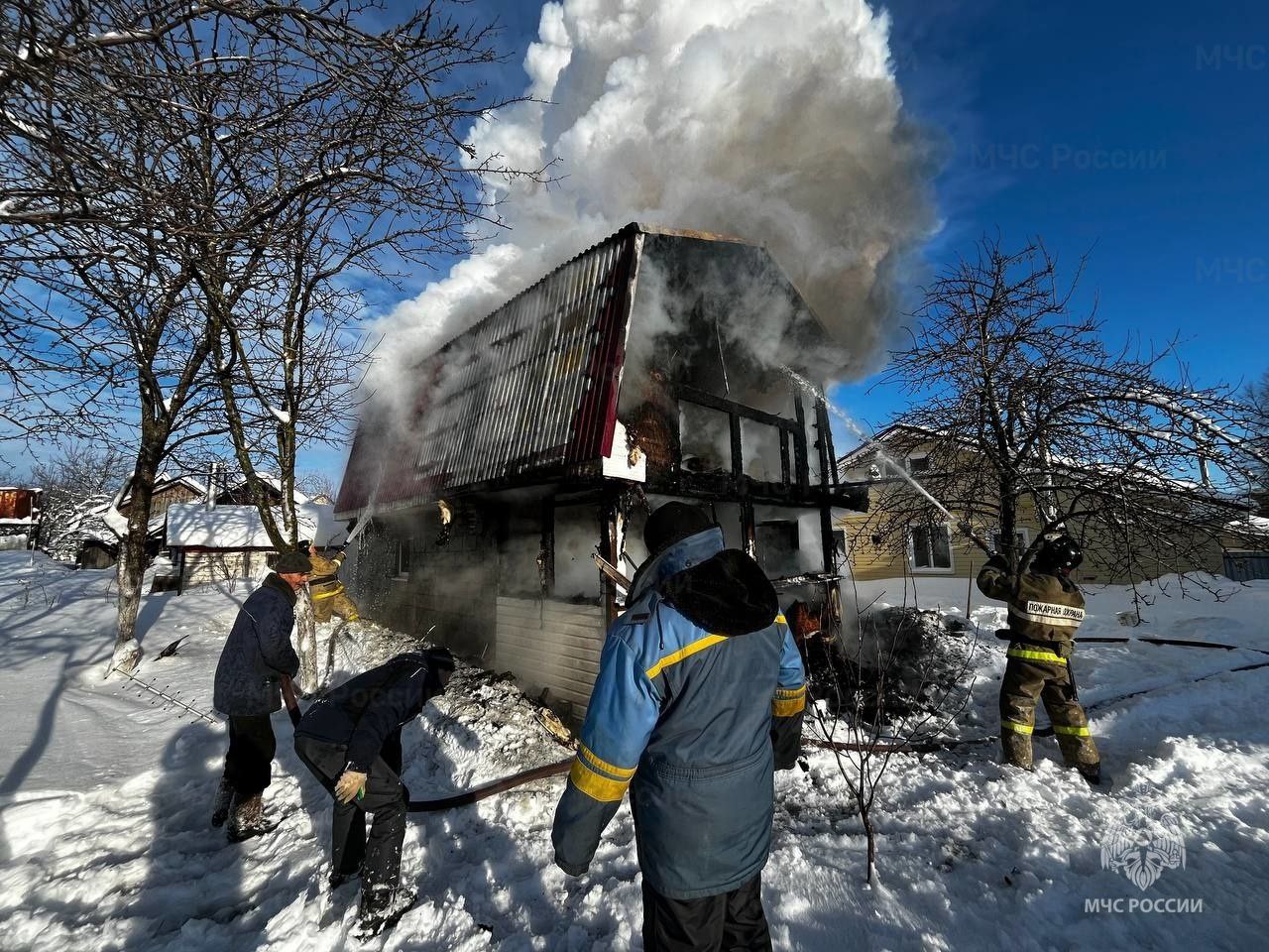Первый пожар случился 22 января в 12:15 из-за нарушения правил пожарной безопасности при использовании печи. В итоге загорелась баня в деревне Яшкильдино Красноармейского района.
