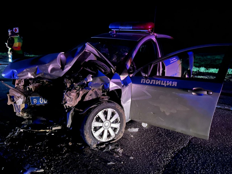 Водитель продолжил движение по встречной полосе и врезался в стоявший на обочине со включенными световыми и звуковыми сигналами служебный автомобиль, а также находившегося вне его полицейского. После столкновения "Форд" опрокинулся в кювет.