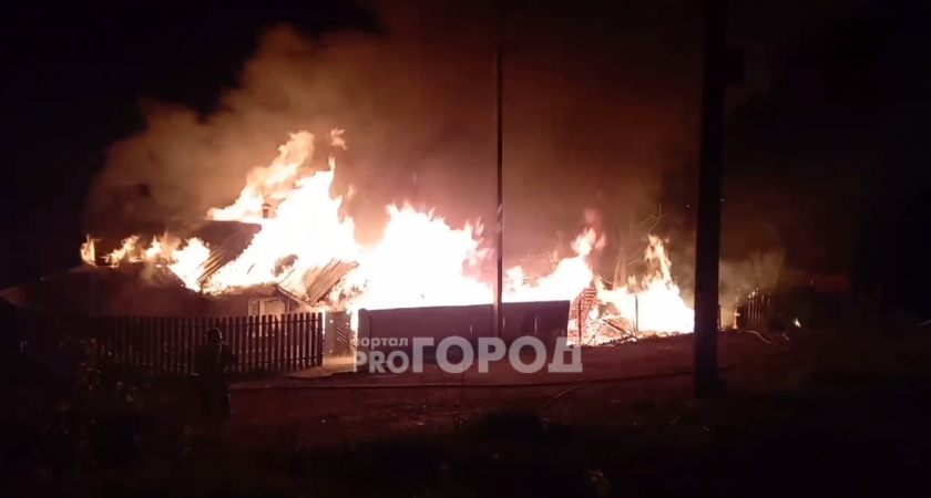 Около полуночи в Чебоксарах вспыхнуло подворье с домом