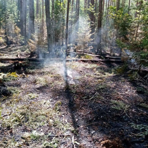"В настоящее время продолжается ликвидация лесного пожара. Предварительная причина возникновения возгорания – удар молнии в дерево", – сообщают 12 июля.