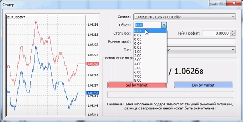 - Минимальный объем позиции — 0,01 лота.