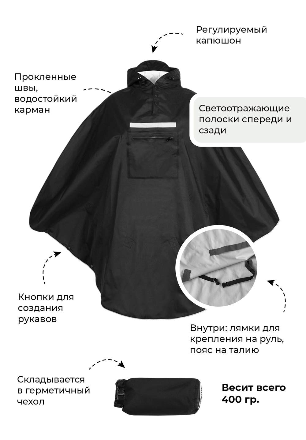 Непромокаемая накидка в виде пончо — отличное решение для тех случаев, когда вы хотите надеть дождевик поверх одежды, чтобы не промокнуть и спокойно гулять даже под проливным дождем.