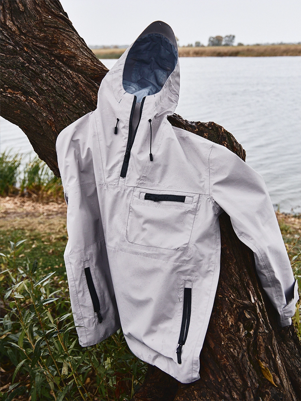 Непромокаемый анорак — идеальное решение для тех, кто хочет заниматься спортом и жить активной жизнью в любую погоду. Это короткая куртка без замка спереди (он есть только сверху и закрывает ворот), с удобными карманами по бокам и на груди, капюшоном и вставкой на застежке, дающей дополнительную защиту от дождя. Компактная, практичная, дышащая и модная модель.